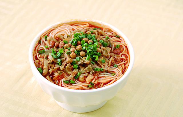 ③担担面?面条细薄,卤汁酥香,咸鲜微辣,香气扑鼻,十分入味。此菜在四川广为流传,常作为筵席点心。2013年,担担面入选商务部、中国饭店协会首次评选的“中国十大名面条”。