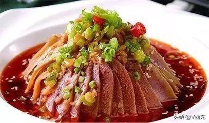 ⑨夫妻肺片?通常以牛头皮、牛心、牛舌、牛肚、牛肉为主料,进行卤制,而后切片。再配以辣椒油、花椒面等辅料制成红油浇在上面。其制作精细,色泽美观,质嫩味鲜,麻辣浓香,非常适口。(总府路)