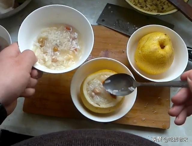 如何做冰糖蒸雪梨?下面吃货老宋介绍一种冰糖雪梨的升级版,好吃美味,美容养颜,止咳润肺。