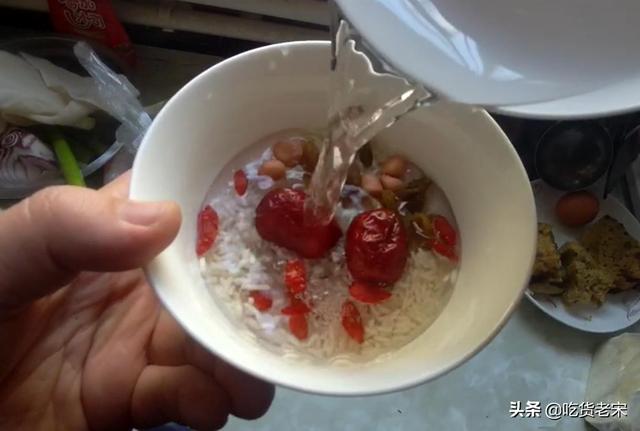 糯米、枸杞、葡萄干、花生米、红枣提前冲洗干净后用水泡半小时。