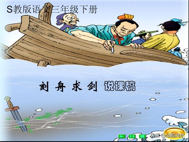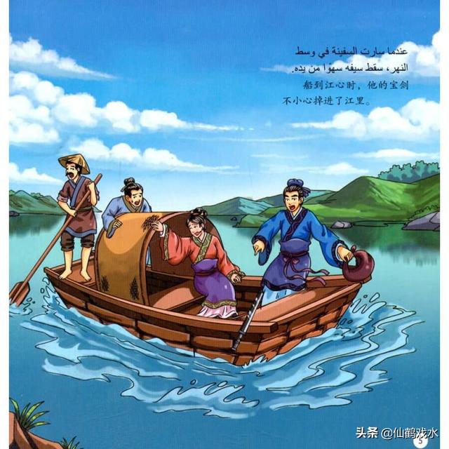 从前,有一个人带着一把宝剑乘船,船正在行驶,突然听见扑通一声,宝剑掉到了水里。这该怎么办呢?这个人心里非常着急,他冥思苦想,终于想到了一个办法,他用小刀在船上刻了一个印记,便继续坐在了船上。 划船的人看到了,非常着急,对他说:“我把船停下来,你赶快去把宝剑捞起来吧!”但是那个人却指着印记说:“不着急,等到了再说,我在船上划了一条线,剑是从这掉下去的,到时候从这里下去找就行了。” 划船的人又说:“你的剑掉到了水里,剑又不会跟着船走,到了对岸是找不到的。”但是那个人无动于衷,于是船夫酒吧船划到了对岸,这时,那个人脱掉了衣服,从船上那条线跳下去,但是捞了很久都没有找到。